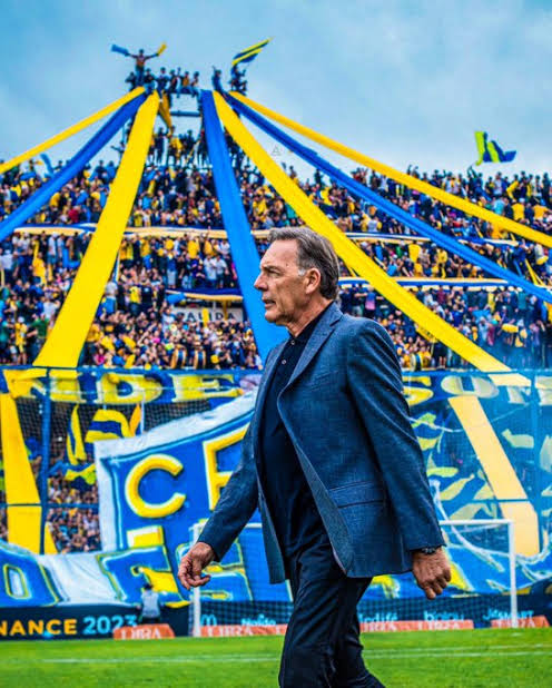 Miguel Ángel Russo sale del túnel y comienza el recorrido hasta el banco de suplentes, del otro lado del campo de juego. Viste saco, camisa blanca con corbata, jeans y los zapatos que se deslizan por el raleado césped del Gigante. Mientras camina mira las tribunas, pinceladas de azul y amarillo y se sorprende con el estruendoso sonido gutural de las gargantas que habitan cada rincón del estadio. Por fuera gesto adusto, concentrado. Por dentro se conmueve.