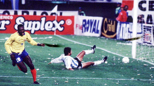 Los goles se sucedieron uno atrás del otro ante la mirada incrédula de Maradona que se encontraba en las tribunas del Monumental. Diego se había bajado del seleccionado tras la final de Italia 90. Los buenos resultados conseguidos por el plantel en ese lapso y el dóping positivo en Napoli lo habían alejado de la celeste y blanca. Por ese motivo, tuvo que sufrir como un hincha más las dagas que clavaban Asprilla (49´ y 74´), Rincón (41´ y 72´) y Adolfo Valencia (84). La hinchada argentina terminaría coreando el típico «Maradoooo, Maradooo» y logrando la vuelta del héroe para el repechaje con Australia.