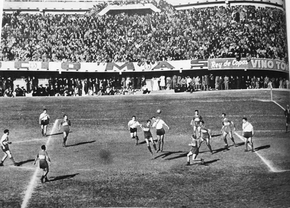 Después de un córner empieza un contragolpe fulminante. Lo lidera Adolfo Pedernera. Está jugando “La Máquina” de River. Tras un entramado de pases en velocidad, Adolfo toca para Labruna, que entraba por la izquierda del área grande apareado con un defensor.