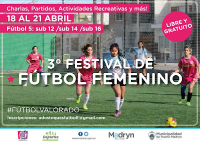 Entre el jueves 18 y el sábado 20 de Abril se llevó a cabo el Tercer Festival de Fútbol Femenino en Puerto Madryn. Un festival que además se desarrolla con la metodología del Fútbol Valorado, una modalidad en la cual son los propios jugadores (en este caso jugadoras) quienes definen las reglas y, al final del encuentro, le otorgan un punto extra a quien haya sido más responsable respecto a las mismas. Todo con la presencia de un mediador o mediadora que acompaña a lxs participantes.